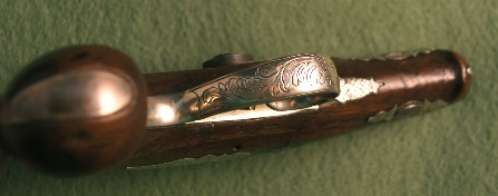 Here we have a Henry Deringer , .42 Caliber with @ a 2 inch barrel. Manufactured for a California Dealer, who was a strong sales outlet for Deringer. Also, according to the Silver Pineapple Finial, which is used to date production, making this an 1848 production, just in time for the Gold Rush of 1849. A.J. Plate was a major dealer !! in San Francisco, selling many weapons to the public in San Francisco, and getting much bigger when thousands more arrived for the Gold Strike at Sutters Mill and the American River. This Deringer is in excellent condition, the wood has a antique luster and is damage free. The Silver Furniture is clean and not damaged, with Strong Engraving present It is also 100% mechanically correct. The top of the barrel is marked Made for A J Plate San Francisco. Undoubtedly it once was hidden in a watch pocket or fancy purse, and probably saw many a card table !! and the Excitement of the Gold Rush.