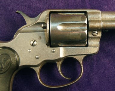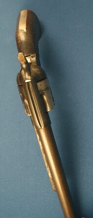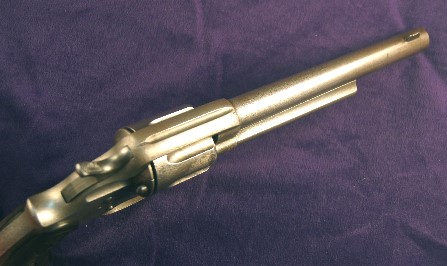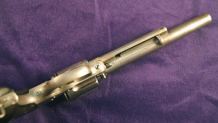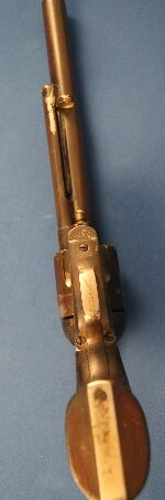Colt was moving ahead with new designs to keep up with newer client demands. First they introduced the Model of 1877 in 3 caliber, .38, .41 and .32 . It had a very delicate Double Action system and was by physical size a smaller revolver. There was a demand for a LARGE frame Double Action, chambered in the larger frontier calibers, .45 and .44, later on 38/40 and 32/20. In 1878 Colt Introduced the Model of 1878, in close appearance to the fabled Single Action in size and weight. However Double Action with a Crescent Style grip. It had a stronger trigger pull and “heft” This EXAMPLE Serial No. 496X represents the EARLY production, not quite yet finalized ! It had a larger grip frame size than the standard production after serial no. 5,000. Initially it came with Checkered Walnut grips, but then Colt was in a transition of grip material. In 1881 – 1882 Colt began to replace the One Piece Walnut grips with Checkered Hard Rubber. So ! why not with the 1878 model also ! However this period fell into a small window, because after Serial 5,000, Colt decided the grip was too large and downsized to a smaller grip, which ran thru end of production. How does this effect this 1878, well it came at the precise time of transition checkered Walnut to Hard Rubber, then quickly became out of production by 1882. So, what this means there are probably around or less than 200 Hard Rubber Fat Grip revolvers EVER !! That make this 1878 very rare and scarce. Colt Factory Letter: say’s shipped March 1, 1881 to Hartley & Graham, NY, NY. Nickel finish, .45 Rubber, 7-1/2 inch, exactly !! as you see it today. MECHANICS: This 1878 has absolutely 100% correct working actions. Single Action mode, Double Action mode, cylinder rotation and index and lock up are perfect. Releasing to fire. NO. NO mechanical problems. The overall finish has about 15-20% original nickel, the main surfaces are a pleasing gray patina. ALL factory applied markings are clear and present. By the way, the Hard rubber grips are in PERFECT condition, NO damage. Even the Lanyard Ring is present ! Do not be fooled, these revolvers were popular and there are MANY existent photo’s of Frontier Westerners carrying and using 1878’s. Very suitable for a Colt Collection , and a RARE Model of 1878.