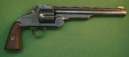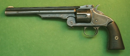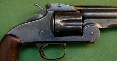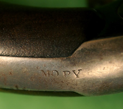 This is a First Model S&W American .44, which saw service in the Missouri Penitentiary in Jefferson, Mo. in the 1870’s Serial No. 226X has the Eight inch Barrel, and fires the .44 American Cartridge. It is a completely matching revolver, ALL serial Numbers match , including the Grips. The finish is a Patina mix of Factory blue, blended with slight plum colorization and gray. All markings are clear sharp, barrel address, as are all serial numbers. ON THE UPPER BACK STRAP is MO PY, standing for Missouri Penitentiary. The Prison was sometimes referred as the “Walls” for it’s thick and high stone walls. It Housed some of the MOST notorious outlaws in Missouri: John Reno, of the Reno Gang of Train Robbers. Bill Ryan of the James-Younger Gang, Some not as famous, but equally DANGEROUS ! Over a period, it got a more Gruesome “Nick Name” , the 47 Bloodiest Acres in America. This was due to many prison riots, stemming from hard conditions, and a part of many attempted “break-outs”. This 1st American was there !! Starting in 1870-1871. In service with a Guard. Guards had to purchase their own pistols. The one carried by this guard picked a S&W American, the BEST Frontier Revolver of the Day, Colt was not yet there, not until 1873-1874, and then limited due to U.S. Calvary Contracts. Funny, how many of the inmates favored Americans, like the James Younger Gang. The working actions are 100% correct, all phases of unloading, loading, cocking, firing etc… The original grips have a smooth patina finish with no damage. All screw heads slots are clear and straight . Prison marked revolvers of the Frontier and Frontier era are seldom encountered.