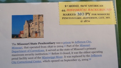 Along with the revolver goes an information sheet about the Prison/a brief history.