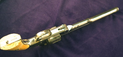 Currently the ORIGINAL nickel finish is present at about 45-50% level. The balance is a soft muted medium gray patina. The original 5 inch barrel and bead front sight is still present. ALL factory applied markings are present. Cylinder patents and address, some what faded due to wear. There is still recognizable case coloring on the hammer and trigger . MECHANICALLY : ON ALL working actions it OPERATES 100% CORRECT, DOUBLE AND SINGLE ACTION NO MECHAINICAL PROBLEMS ; THAT IS OPENING, EJECTING, CLOSING, LOCKING TIGHT AND PERFECT CYLINDER ROTATION, LOCKING WHEN COCKING, AND A SMOOTH RELREASE TO FIRE. THE PEARL GRIPS HAVE NO DAMAGE, AND have VIBRANT FIREY RAINBOW COLORS AND SHOW THEY ARE 143 YEARS OLD, IN PERFECT CONDITION.