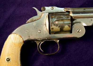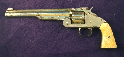 2nd Model Smith & Wesson, American, 44 Henry Rimfire, from 1872, Checkered Ivory Grip 1873